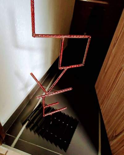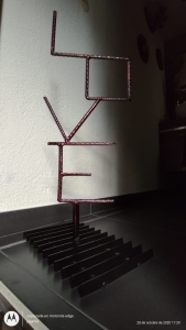 Letrero "Love" minimalista fabricado en acero industrial recubierto con tratamiento anticorrosivo.