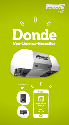Por primera vez en la historia de los operadores de garaje, el nuevo Merik modelo 7511LMK con impulso de cadena y respaldo de batería trae integrado la tecología MyQ, un sistema de comunicación de dos vías patentado: por medio de control remoto e internet.